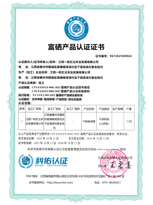 江西一粒紅塵農業發展有限公司是一家總部位于江西省贛縣的現代農業多元型企業,專注于食用菌的研發種植、深加工貿易、研教培、農文旅等全產業鏈發展。公司秉承“健康、綠色、共享共贏”的核心價值觀,致力于引領鄉村振興之路,旨在成為......
